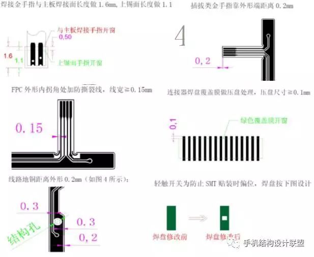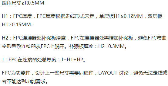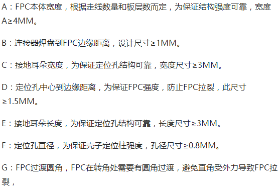如上图所示,以主FPC为例,各部分设计尺寸要求: